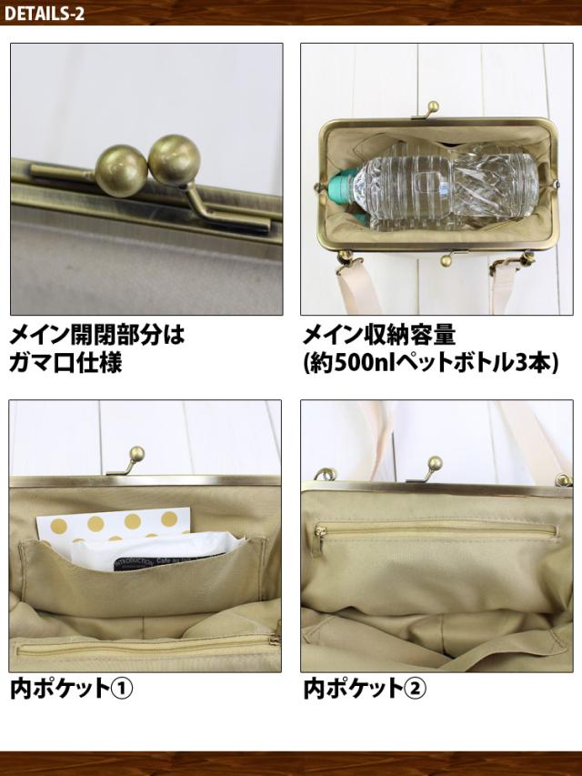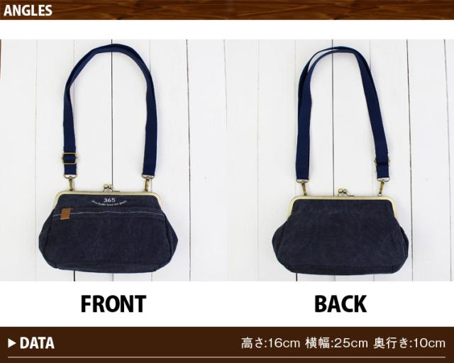 帆布ロゴ刺繍ガマ口ショルダーバッグ