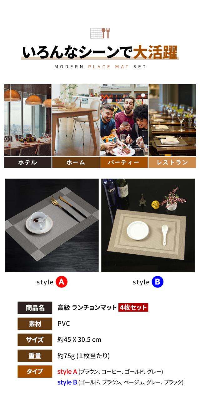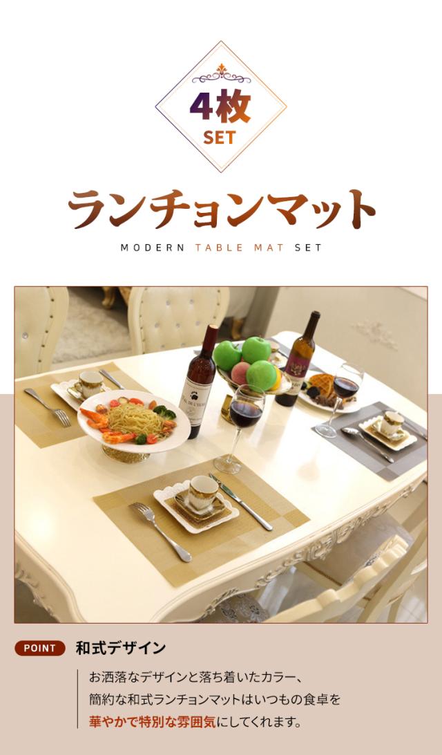 [送料無料] ランチョンマット 北欧 4枚セット おしゃれ 高級感 撥水 防汚 汚れ 傷防止 敷物 水洗いOK 家庭 子供 レストラン 食卓 PVC製 食卓マット インテリア 撥水加工