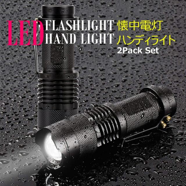 [送料無料] ハンディライト LED 懐中電灯 2個セット 電池式 ミニライト 超小型 最強 高輝度 超強力 CREE社製 3モード 停電 防災 対策 防水 ズーム LED 防犯 自転車 電池