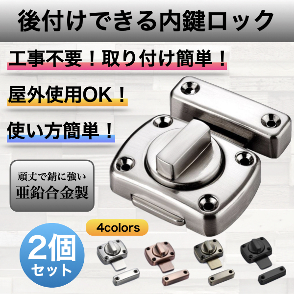 内鍵 後付け ドアロック 取り付け 玄関 部屋 簡単 徘徊防止 部屋 簡単 防犯 鍵 かぎ 内カギ 2個 施錠 回転式 工事不要 簡単取付