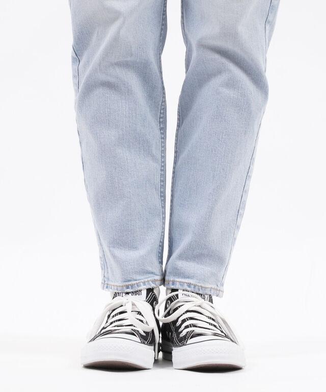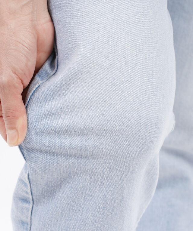程よい股上と膝下から細くなったシルエットは、太ももから下のバランスを調整しています。
