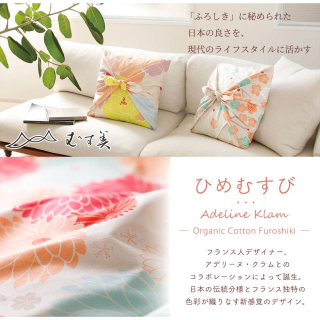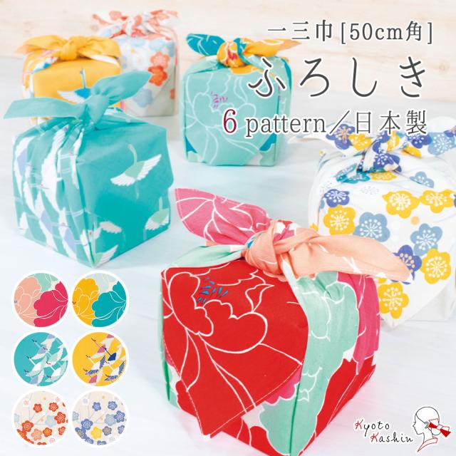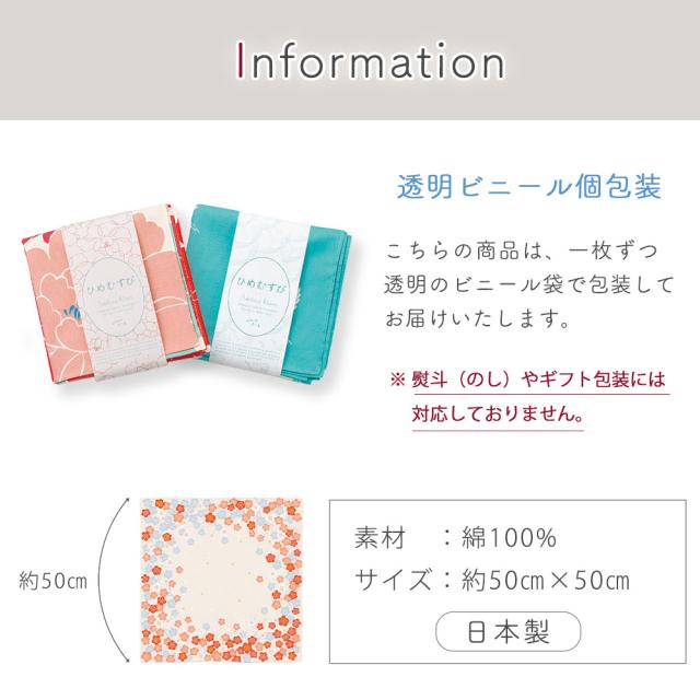 【4枚までメール便発送OK】風呂敷 約50cm 綿100% 国産風呂敷 一三巾 日本製 ふろしき かわいい おしゃれ オーガニック コットン 小風呂敷 包み 梅 オレンジ ブルー 鶴 ターコイズ イエロー 牡丹 レッド 青 赤 黄色 ひめむすび アデリーヌ・クラム