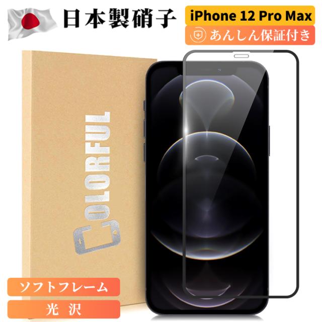 iPhone 12 Pro Max 日本製ガラス AGC旭硝子 ガラスフィルム 全面保護フィルム フィルム iPhone12 Promax iPhone12ProMax iphone12promax 強化ガラス保護フィルム 硬度9H 液晶保護フィルム アイフォン 保護シール 6.7 インチ 強硬度 ブラック ホワイトソフトフレーム 全面吸着