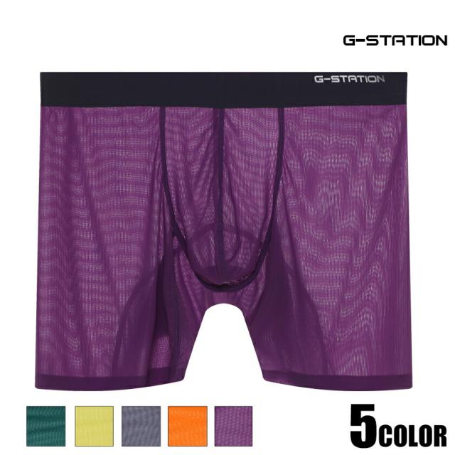 【G-Station/ジーステーション】ウエスト&足口 シームレス ウルトラライト透けリブ ロングボクサーパンツ メンズ 男性下着 薄手 透け 軽量 立体縫製 タグレス
