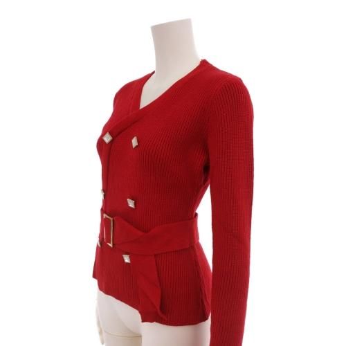 【グラシア】 トップス セクシー レディース デコルテ ベルトアレンジ カーディガン風 鮮やか ニット レッド フリーサイズ