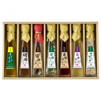 毎日の食卓に欠かせない調味料の詰め合わせです。ドレッシングや香味料、ふりかけなど…様々な調味料で食卓を華やかに彩ります。【内容量】・エキストラヴァージンオリーブオイル 115g×1・胡麻ドレッシング 120ml×1・有明海苔ふりかけ 40g×1・醤油の素 6g×1・香味あぶら 115g×1・白金あぶら 115g×1・野菜胡麻ふりかけ 50g×1【商品サイズ】 224×364×50(mm)重量:2060g賞味期限 常温365日アレルゲン 小麦・大豆・ごま