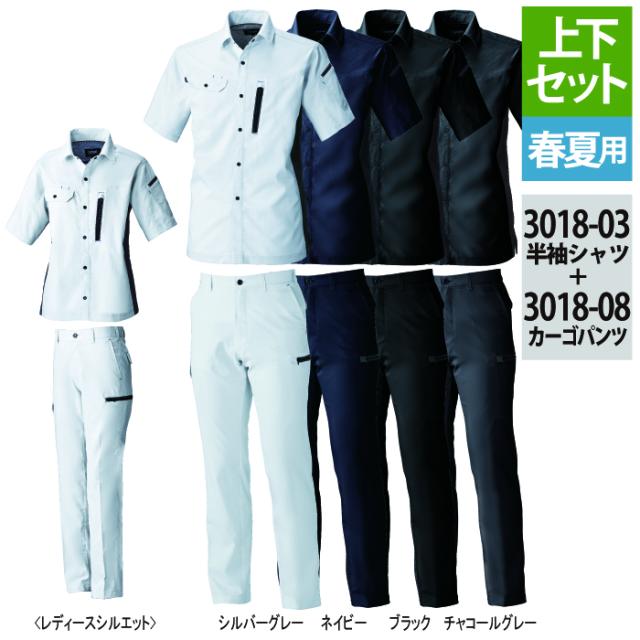 桑和 SOWA 作業服 上下セット 3018-03 半袖シャツS-3L と 3018-08 カーゴパンツ GS-100 春夏用 かっこいい おしゃれ 作業着 ズボン