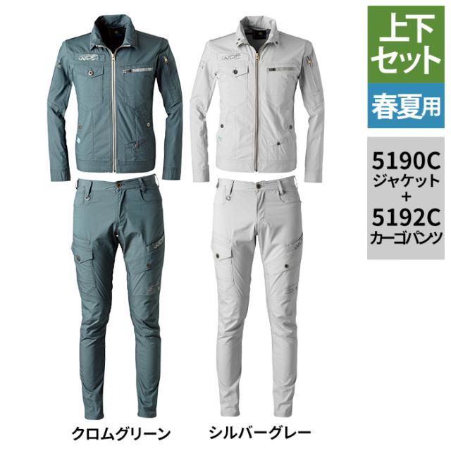 アイズフロンティア 作業服 上下セット 5190C ツイルワークジャケット と 5192C ツイルカーゴパンツ S-4L 春夏用 かっこいい おしゃれ