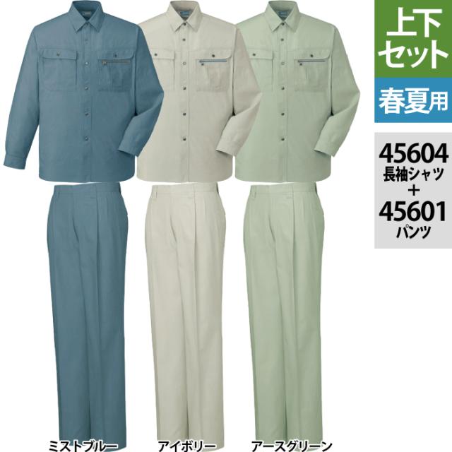 自重堂 作業服 上下セット 45604 長袖シャツ と 45601 ツータックパンツ S-LL ズボン 春夏用 作業着