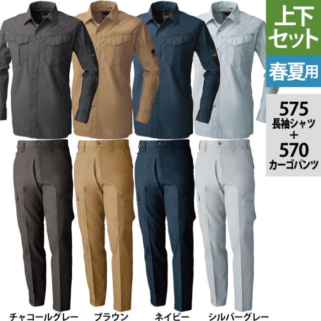 桑和 SOWA 作業服 上下セット 575 長袖シャツM-3L と 570 カーゴパンツ S-3L 春夏用 かっこいい おしゃれ 作業着 ズボン