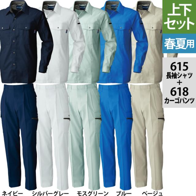 桑和 SOWA 作業服 上下セット 615 長袖シャツM-3L と 618 カーゴパンツ 70-100 春夏用 かっこいい おしゃれ 作業着 ズボン