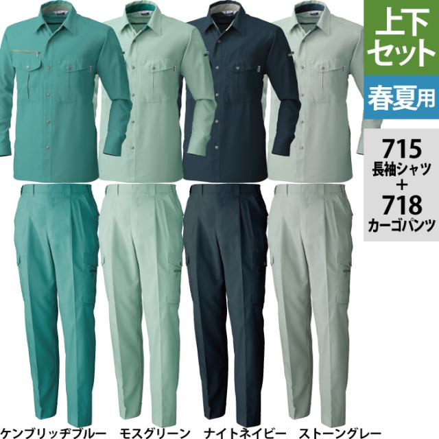 送料無料 作業服 春夏用 SOWA 上下セット 715 長袖シャツM〜LL と 718 カーゴパンツ S〜LL 作業着 作業ズボン
