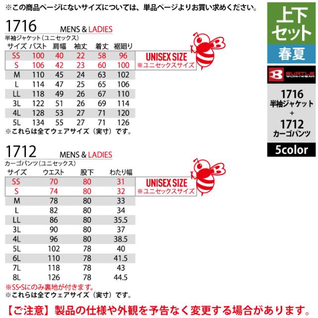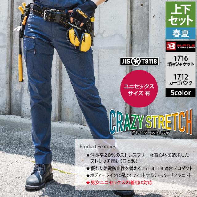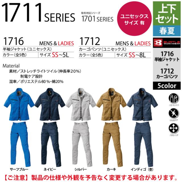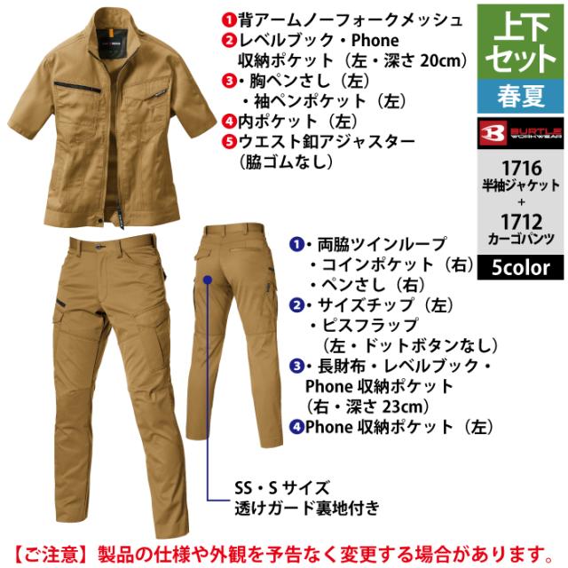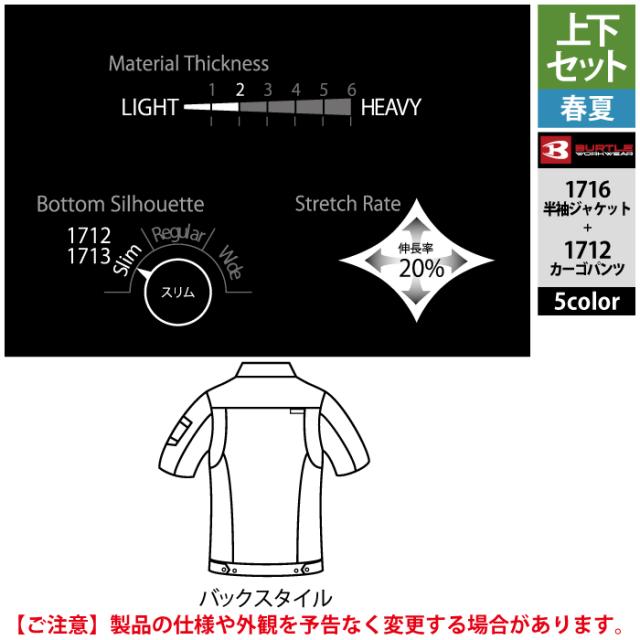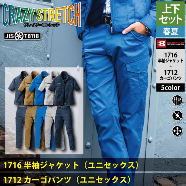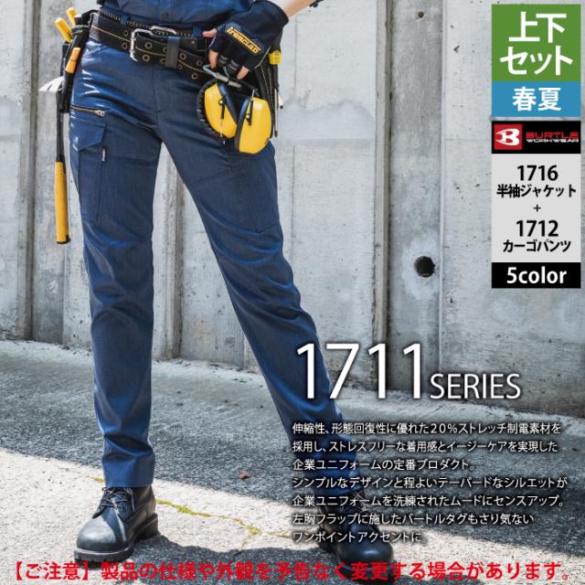バートル BURTLE 作業服 作業着 上下セット 1716 半袖ジャケットM-3L と 1712 カーゴパンツ S-3L 春夏用 かっこいい おしゃれ ズボン