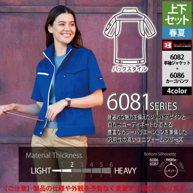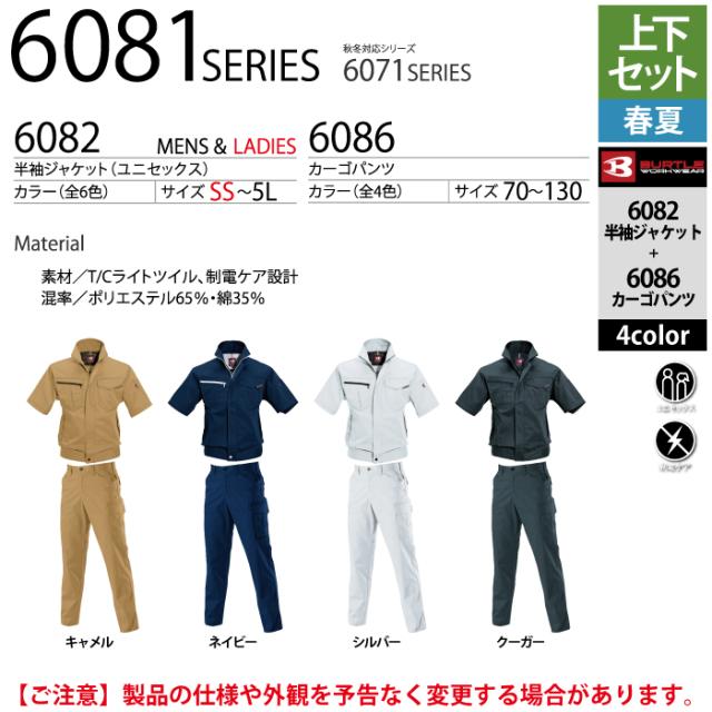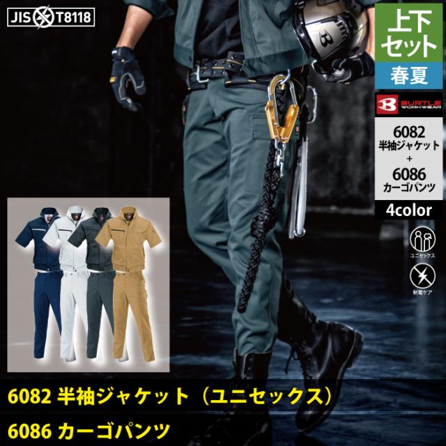 バートル BURTLE 作業服 作業着 上下セット 6082 半袖ジャケットS-3L と 6086 カーゴパンツ 70-100 春夏用 かっこいい おしゃれ ズボン
