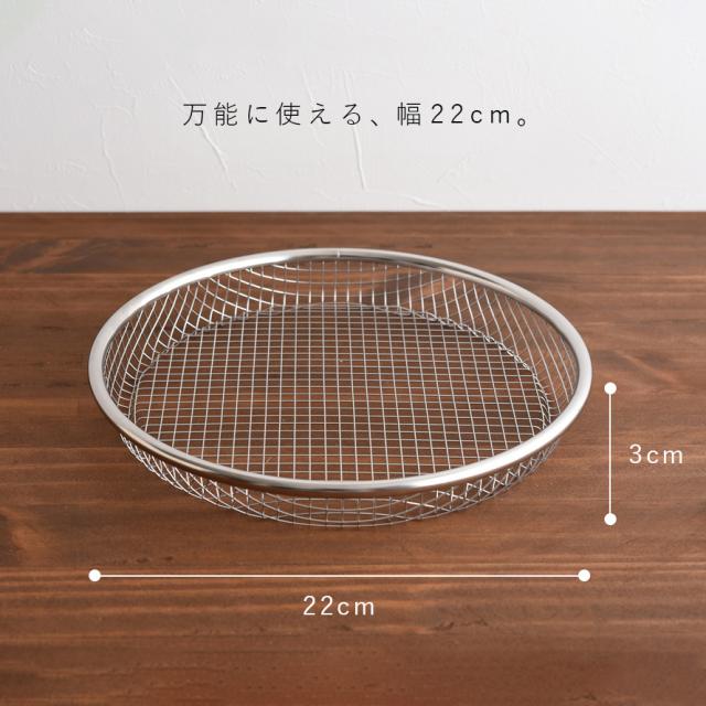 燕三条 ざる,油切り 皿,ザル 平 ステンレス,燕三条,ステンレス,ざる,ザル,22cm,22センチ,網,皿,お皿,逸品物創,浅型,平,網目,粗目,丸形,円形,揚げ物,唐揚げ,天ぷら,お蕎麦,そば,うどん,麺類,野菜,水切り,油切り,オイルカット,油切りできる,ヘルシー,ダイエット,鍋,しゃぶしゃぶ,すき焼き,野菜盛り,日本製,高級,調理器具,調理道具,キッチンツール,キッチン,台所,調理,料理,家事,キッチン用品,キッチン雑貨,台所用品,キッチンアイテム,キッチングッズ,時短,アイデア,便利グッズ,おすすめ,オススメ,人気,清潔,衛生的,汚れが落ちやすい,洗いやすい,乾きやすい,錆びにくい,サビにくい,丈夫,上質,高品質,