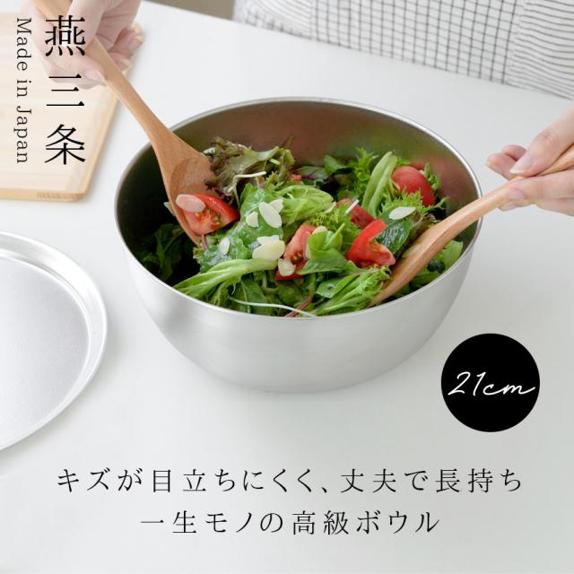金属加工の産地、新潟県燕三条産の高品質ステンレスボウル21cm。和えサラダなどにちょうどいいサイズ感です。