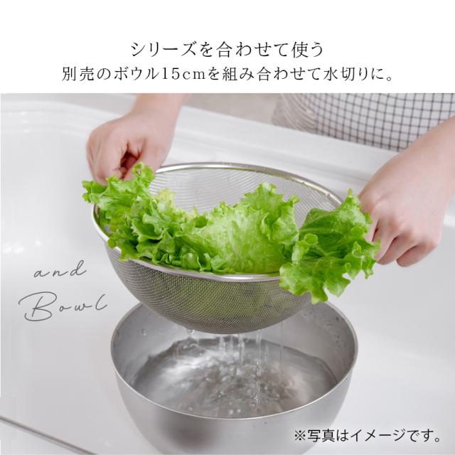 金属加工の産地、新潟県燕三条産の高品質ステンレスザル15cm。少量のお野菜の水切りなどに最適です。