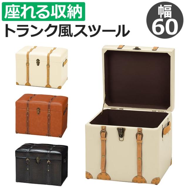 椅子 スツール トランク型 おしゃれ イス チェア 座れる 収納 スツールボックス MC-6001 (H) 約幅60×奥行40×高さ46cm ベンチ いす レザー 合皮 ビンテージ調 レトロ アンティーク風 デザイン 収納スツール 引っ越し 新生活