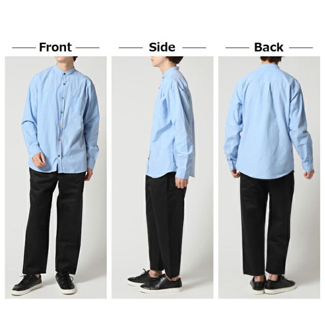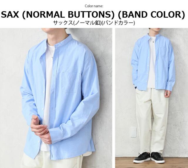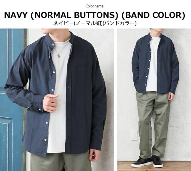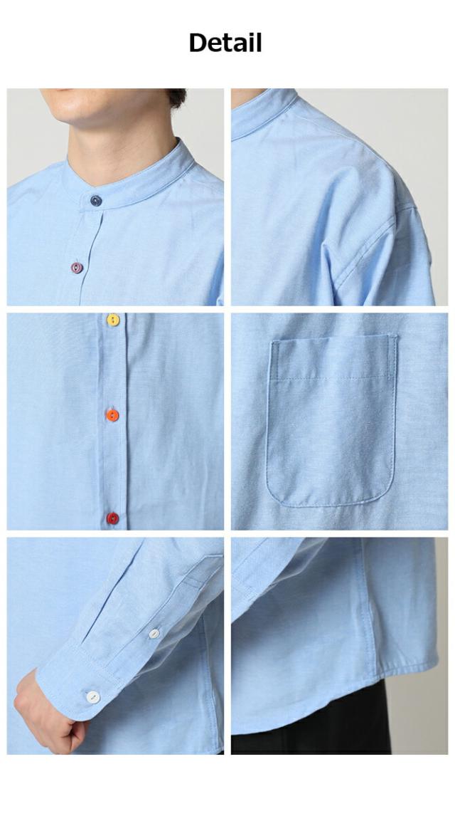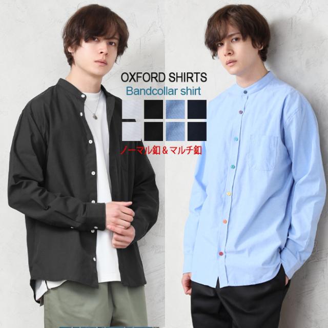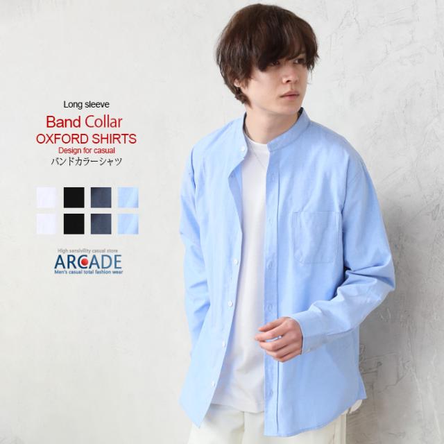 オックスフォードシャツ,メンズ,バンドカラーシャツ 長袖メンズシャツ