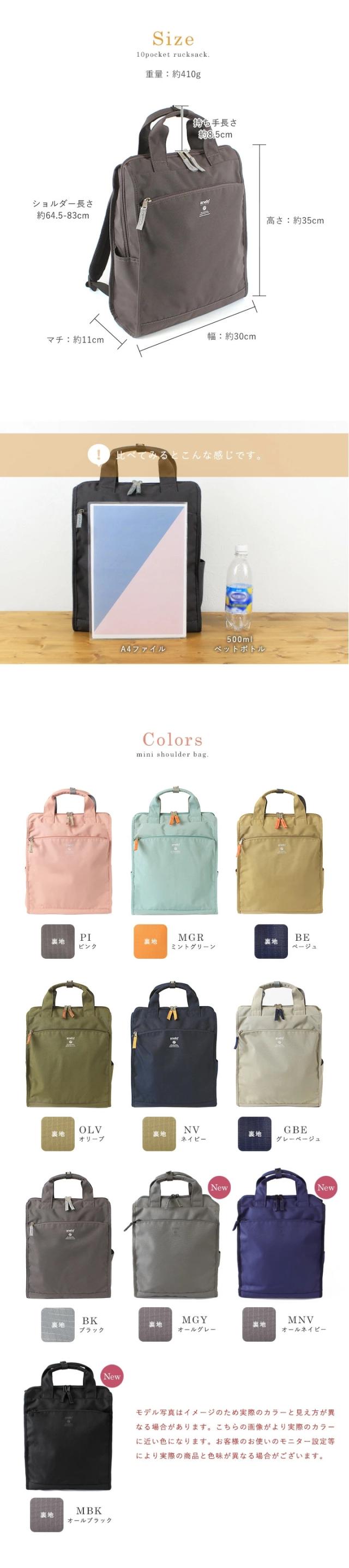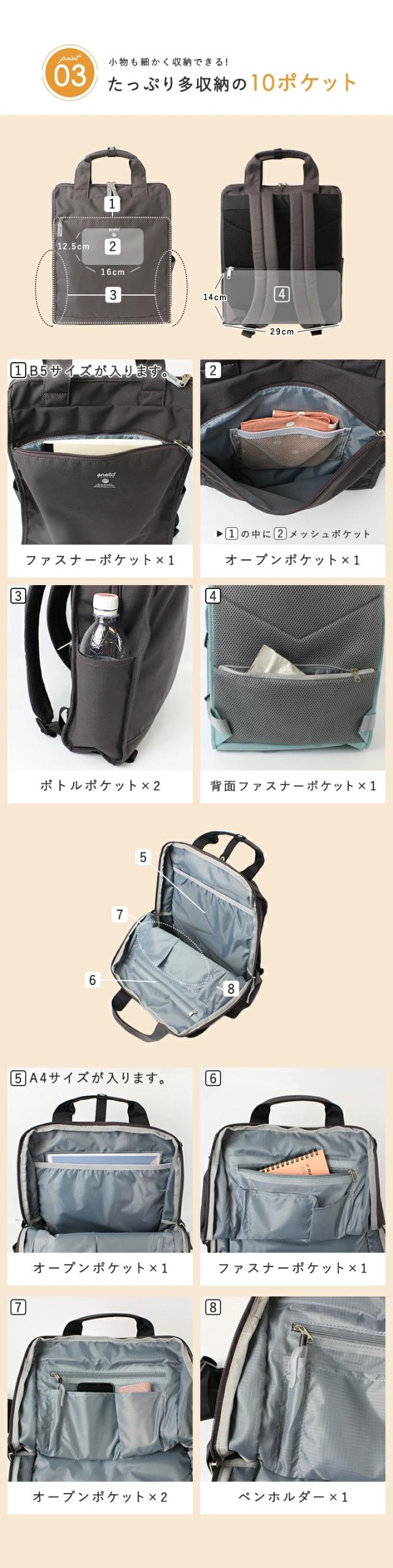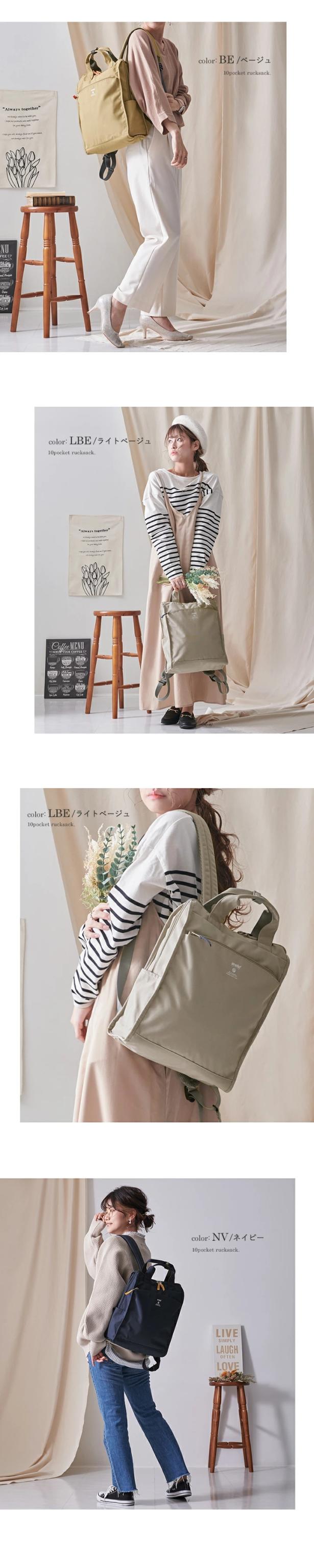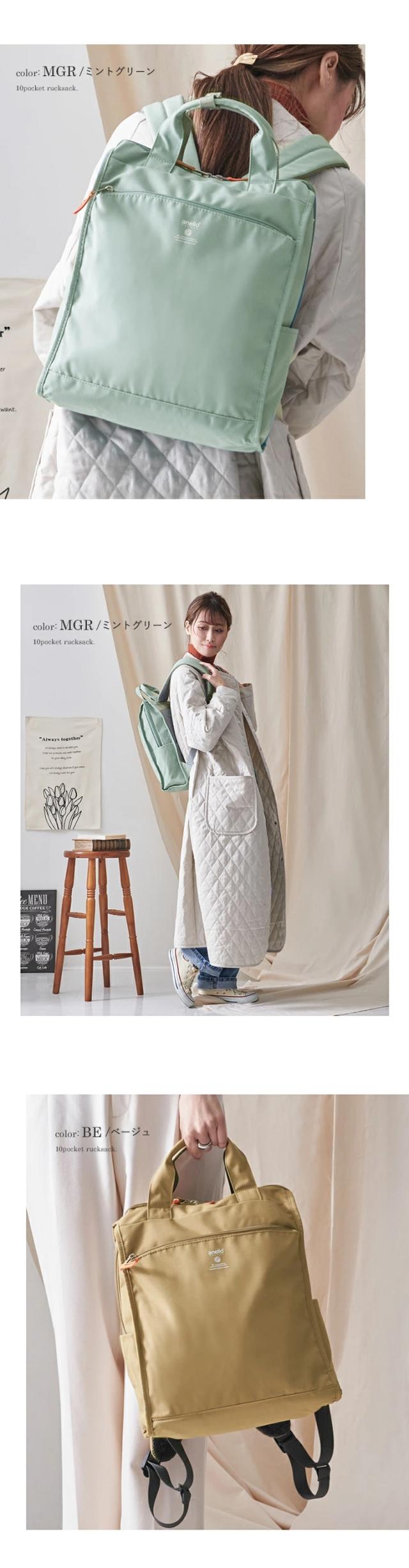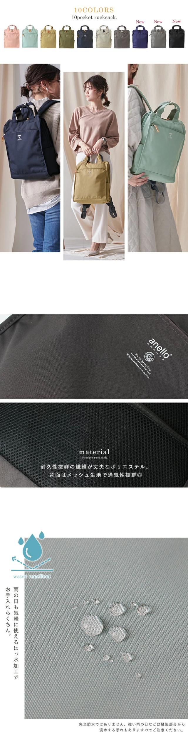 バックパック anello アネロ 10ポケット リュック レディース メンズ リュックサック 大容量 A4 トート 軽量 縦型 撥水 雨の日 デイパック ママバッグ 大きめ おしゃれ 多収納 通勤 通学 旅行 ユニセックス【m0171】