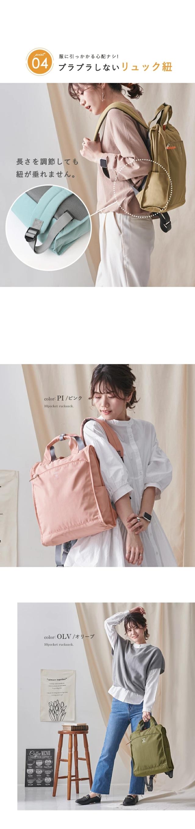 【選べる8色】合計10ポケットのたっぷり多収納リュックサック。
