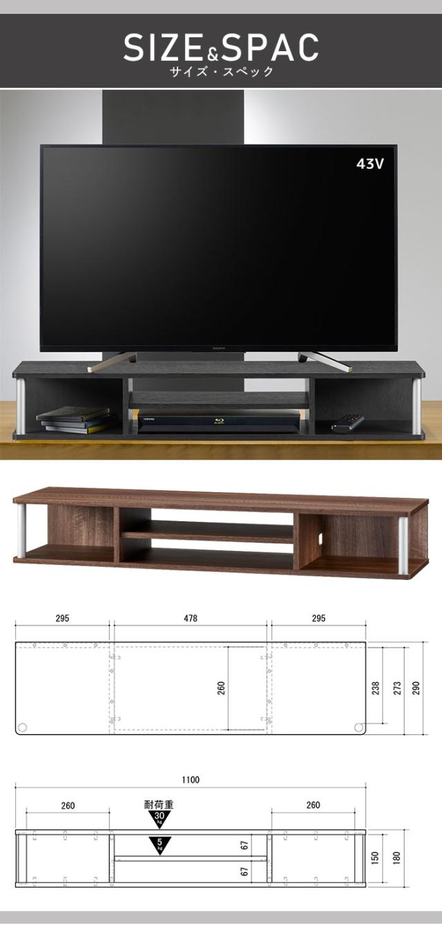 テレビ台 ローボード 幅110 奥行29 高さ18 49V型 ちょい足し ラック ダブル 高さ テレビラック 木製 収納 モニタースタンド キーボード収納 木目調 おしゃれ AV収納 TV台 薄型 スリム 低い ロー 完成品 パソコン モニター