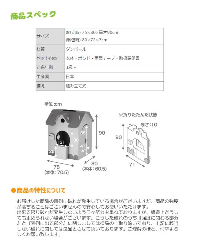 ■サイズ(外寸法):[ハウス組立時]約82.5×81.5×高さ91cm [梱包時]約93×76.5×5cm