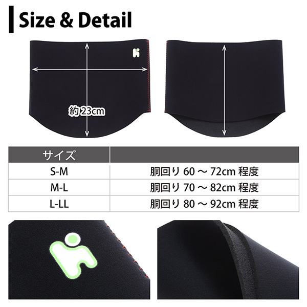 職人による丁寧な貼り縫いの国産ハンドメイドです。耐久性にも優れており長い間品質を落とすことなくご使用できる腹巻きです。ウエットスーツ素材ですから、山や海での使用も安心。スポーツ、アウトドア全般でご使用いただけます。