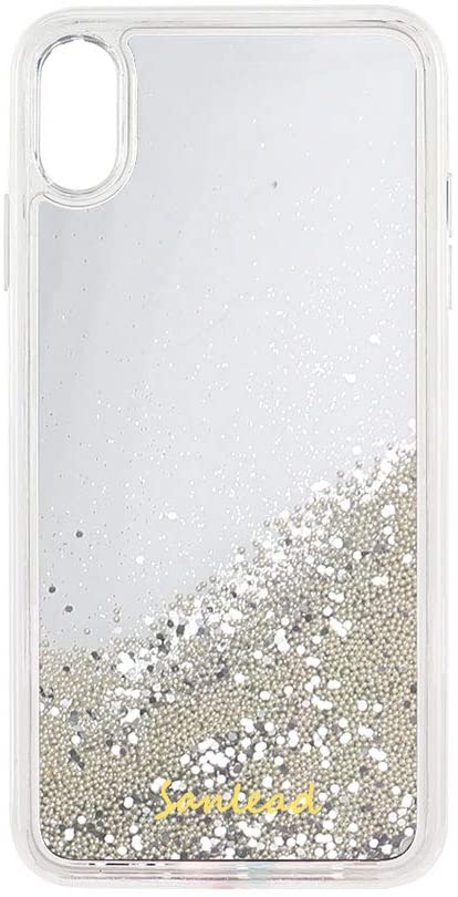 (sanlead) Iphone スマホケース 動くたびにキラキラ輝く ラメ×ビーズ ビーズシルバー iphoneXS Max