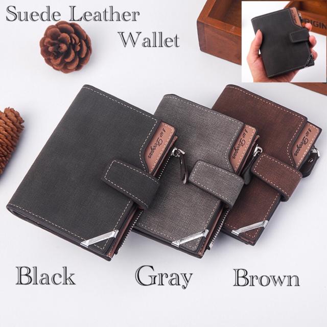 4 財布 二つ折り財布 スエード レザー 革 収納ケース カードホルダー ボタン式 札入れ 小銭入れ カード入れ 男女兼用 ブラック ブラウン グレー