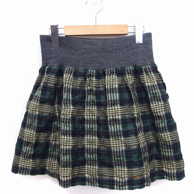 【中古】スピック&スパン Spick&Span チェック柄 フレア スカート ミニ ウエストリブニット ウール混 グリーン 緑 /FT