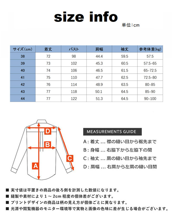 ※基本的に、XL・LL・2Lのサイズはすべて同じサイズです。