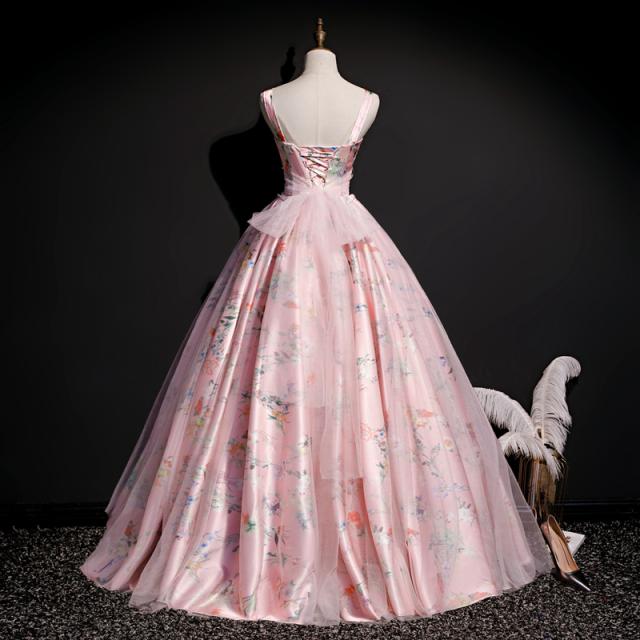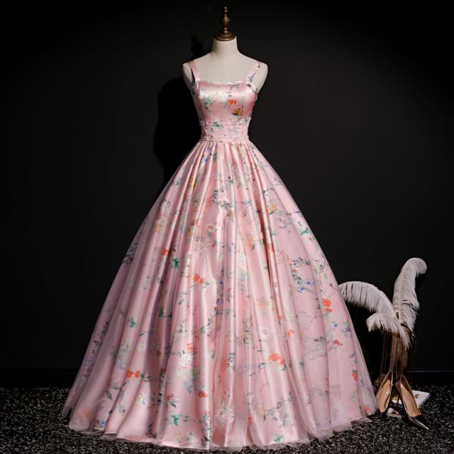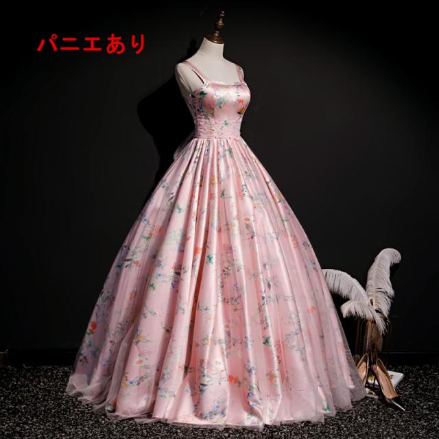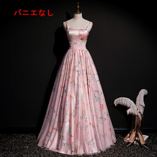 高品質 サテン ロングドレス パーティドレス カラードレス ワンピ ピンク 二次会 発表会 演奏会 撮影 パニエ付 オーダーサイズ可能 D205