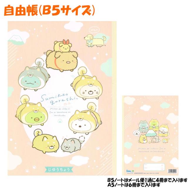 【メール便 OK】 自由帳 女の子 向け すみっコぐらし NY33303 )輪になった犬ぐるみ サンエックス おしゃれ で かわいい 文房具 の ドイブングテン