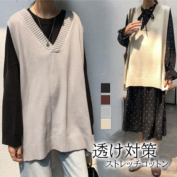 ニット ベスト タンクトップ レディース トップス vネック 無地 大きいサイズ コーデ 40代 秋冬 カジュアル 体型カバー サイドスリット