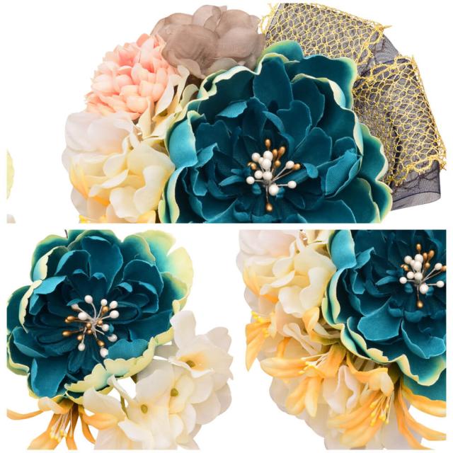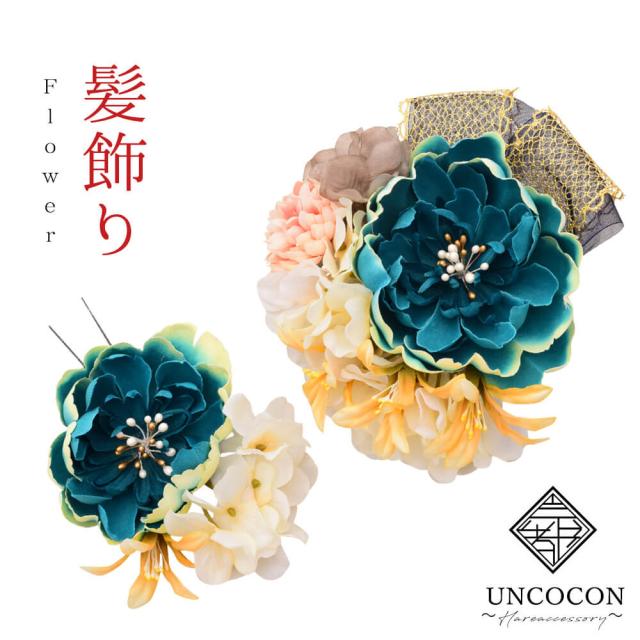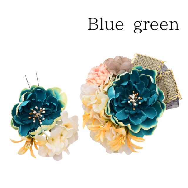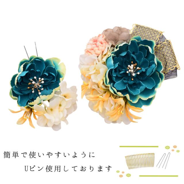 成人式 卒業 髪飾り 花かんざしセット ブルーグリーン