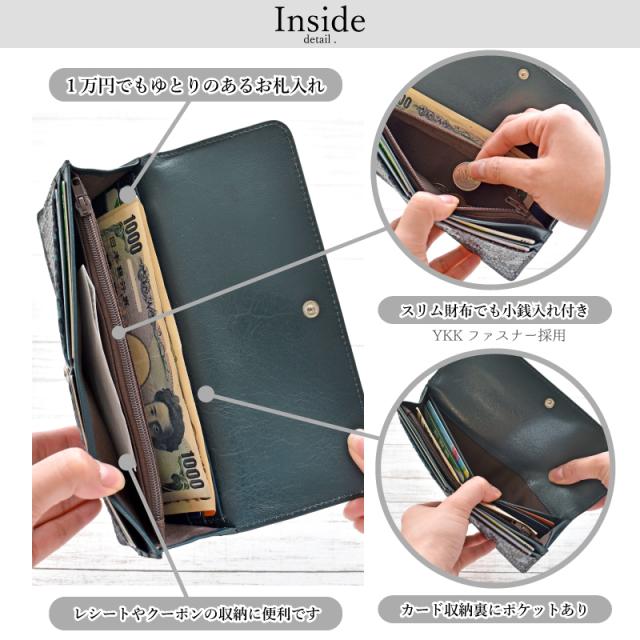 | スペック | 収納:小銭入れ×1 紙幣入れ×2 ワイドポケット×1 カードポケット×8 背面ファスナーポケット×1 ファスナー:YKKメタルファスナー |