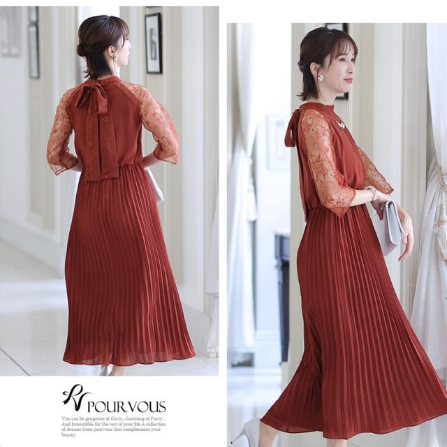 ネックリボンプリーツスカートドレス【999221316】20代・30代・40代・54代長袖・膝丈・セットアップ・スカート・体型カバー・ジャケット・テーラード・スーツ・大きいサイズなど・即日発送・送料無料結婚式・婚活・披露宴・顔合わせ・二次会・同窓会・お呼ばれ・食事会・謝恩会・親族・七五三・お宮参り・冠婚葬祭・弔事・女子会・デート・入学式・卒業式・入園式・卒園式・ママ・マタニティー・セレモニー・セレブ・パーティー