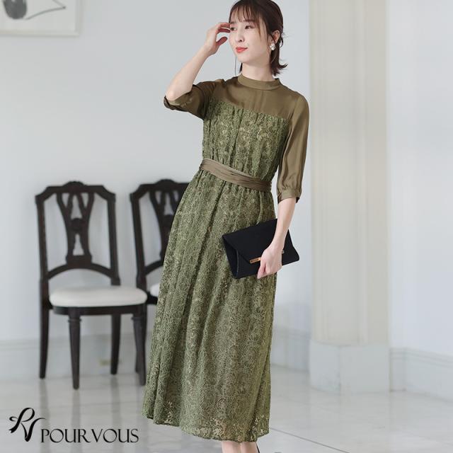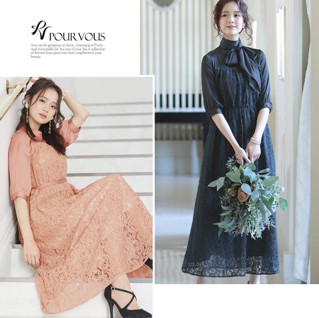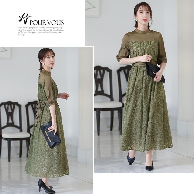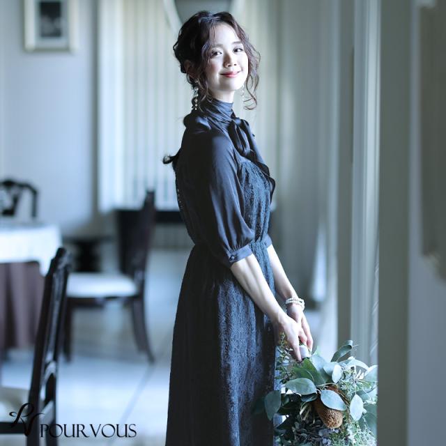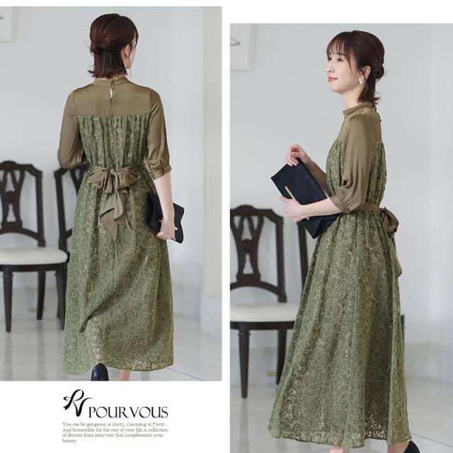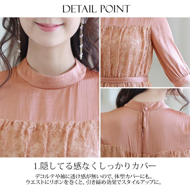 ヴィンテージサテン切替えレースドレス【100221316】20代・30代・40代・54代長袖・膝丈・セットアップ・スカート・体型カバー・ジャケット・テーラード・スーツ・大きいサイズなど・即日発送・送料無料結婚式・婚活・披露宴・顔合わせ・二次会・同窓会・お呼ばれ・食事会・謝恩会・親族・七五三・お宮参り・冠婚葬祭・弔事・女子会・デート・入学式・卒業式・入園式・卒園式・ママ・マタニティー・セレモニー・セレブ・パーティー