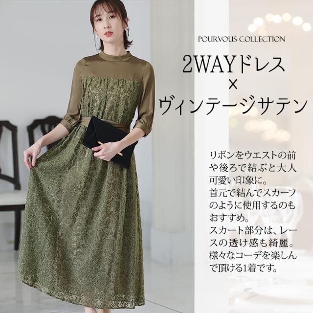 ■2WAY仕様リボンとヴィンテージサテンが上品なドレス
