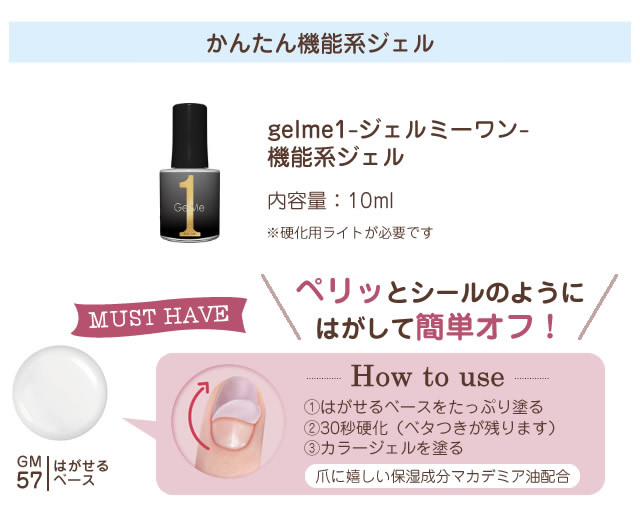 ジェルミーワン はがせるベースコート 10ml (メール便送料無料) はがせるベース GM57 ジェルネイル ネイル はがせる ベースコート セルフジェルカラー GelMe1 ジェルミー1 カラージェル ネイルアート