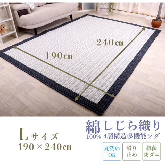ラグ カーペット 綿100% しじら織り 190×240 3畳 3帖 洗える 抗菌 防ダニ 滑り止め付き ラグマット 厚手 秋 冬 ウォッシャブル 洗えるラグ おしゃれ シンプル ナチュラル
