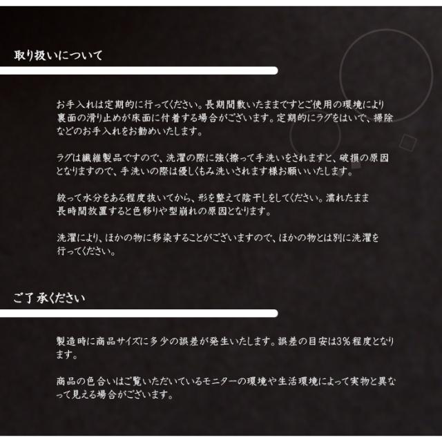 滑り止めは様々な環境や条件により床面に付着する場合もございますので、ラグを剥いで小まめなメンテナンスを行ってください。