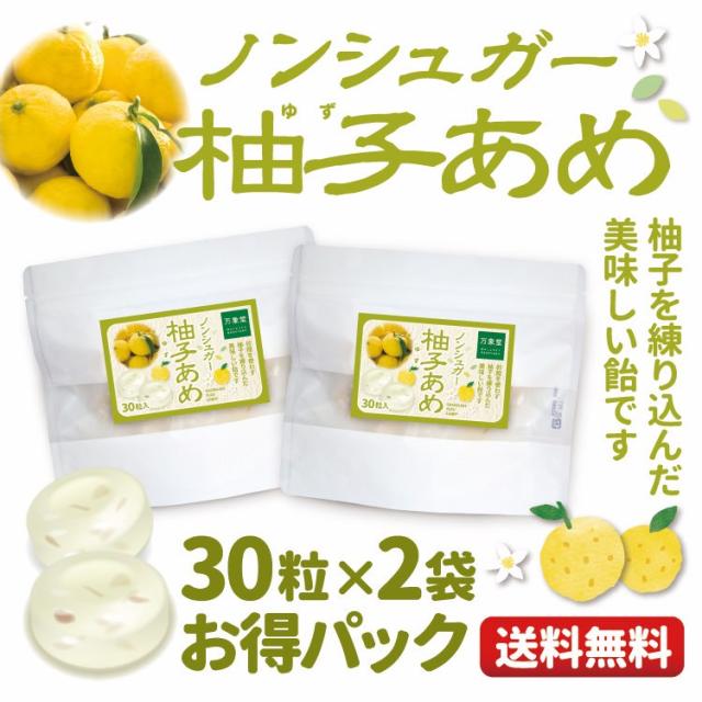 お得な2袋セット シュガーレス 柚子飴 キャンディー 30粒×2袋 送料無料 お菓子 人気 ゆず ユズ ノンシュガー のど飴 砂糖不使用