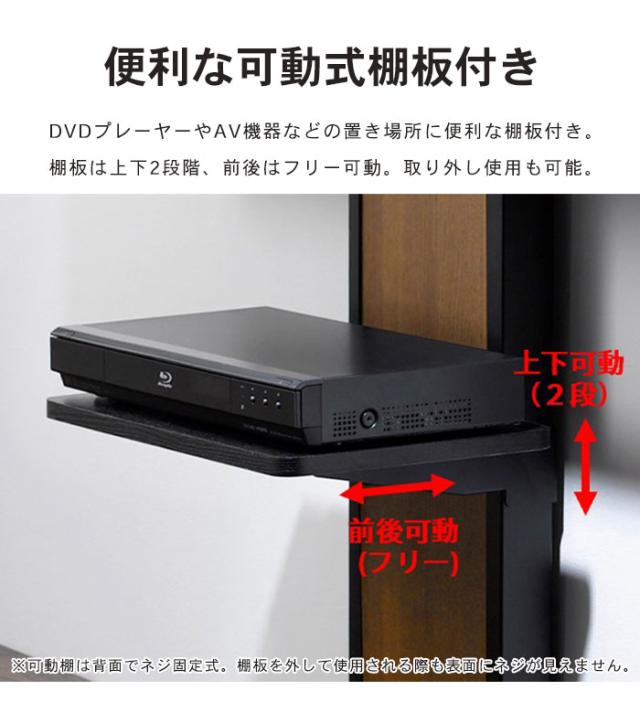 | 壁掛けにしたいけど大掛かりな施工工事はできないという方や賃貸住宅にお住まいの方におすすめの壁寄せテレビスタンド。 背板がリバーシブルなので、お部屋の雰囲気や好みに合わせて切り替えができます。 スマートな壁寄せスタンドは自立式なので、お部屋の角に置いてもスッキリ収まります。 ご自宅のリビングはもちろん、会社やオフィスにもおすすめです。 配線スッキリ設計でスチール製の柱にはマグネット式の電気タップ等がくっつきます。 棚板は前後上下可動式で背面でねじ止めする仕様となっているので、棚板を取り外して使用する際も表面の景観を損ないません。 アジャスター付きでガタつきも調整できます。 安心のテレビ転倒防止ロープ付き。 |