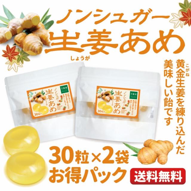 シュガーレス 生姜 飴 30粒×2袋 キャンディー 送料無料 お菓子 しょうが ノンシュガー のど飴 のどあめ 砂糖不使用