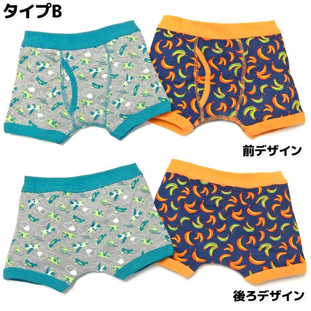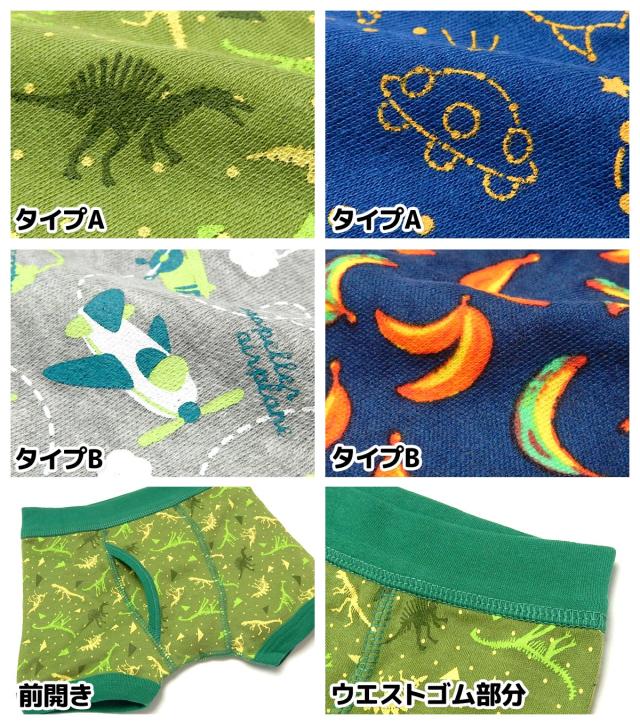 【送料無料】2枚組セット 男児 キッズ ボクサー ブリーフ 前開き 綿混 伸縮性 総柄デザイン 肌着 下着 インナー パンツ 110cm 120cm 130cm yg-1069【メール便対応】