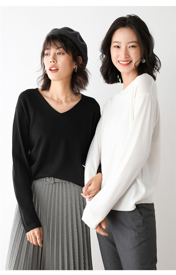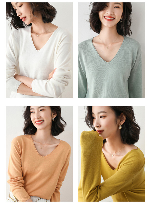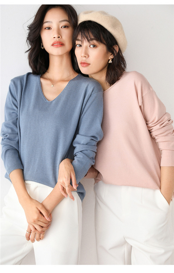カットソー レディース ニット 長袖 Vネック リブ編み シャツ 春 秋 セーター トップス 体型カバー リブニット 新品 通勤 インナー 送料無料