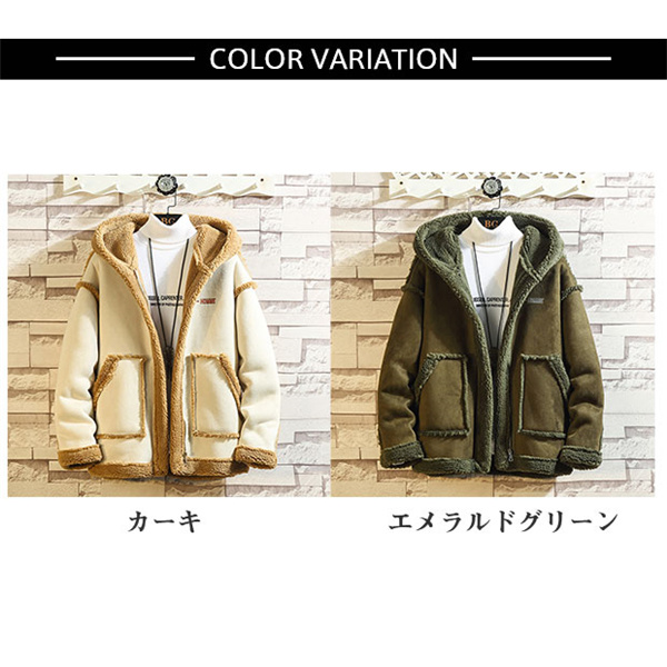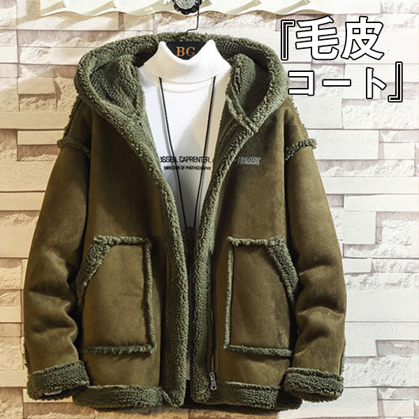 ムートンコート ボアジャケット メンズ フェイクムートン ブルゾン ファーコート 毛皮コート フード付き 裏ボア スエード おしゃれ 父の日 防寒 アウター