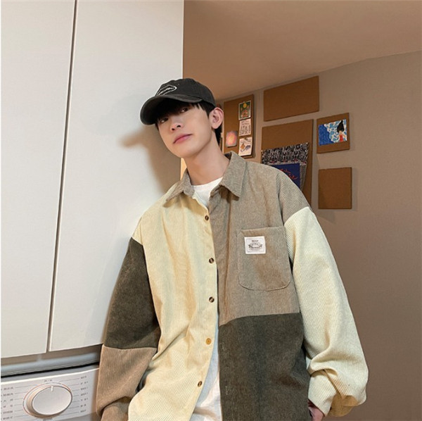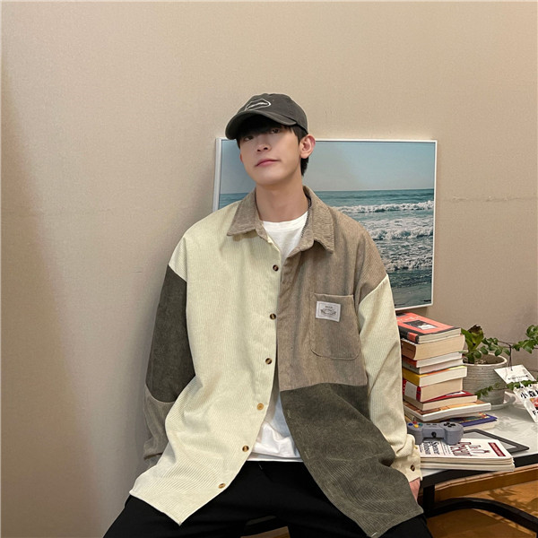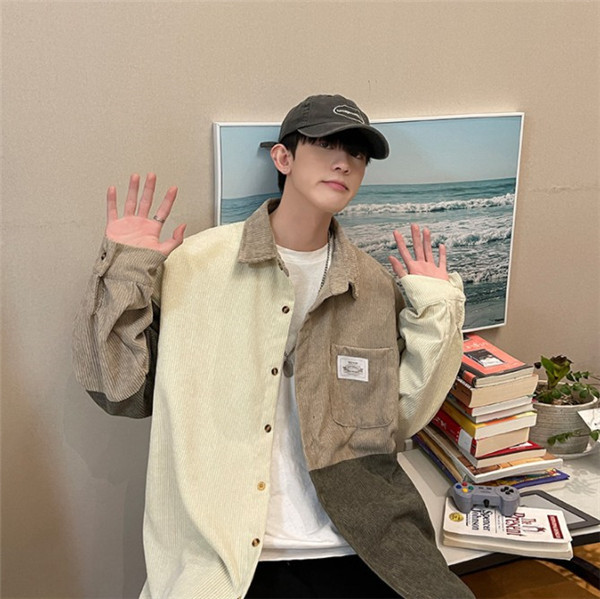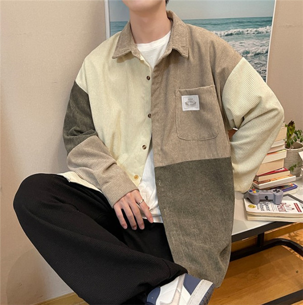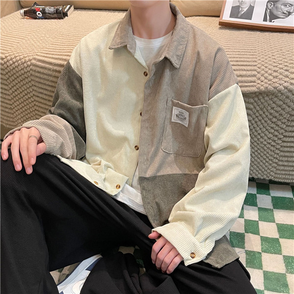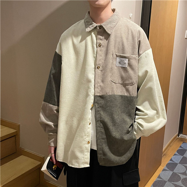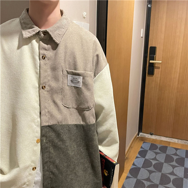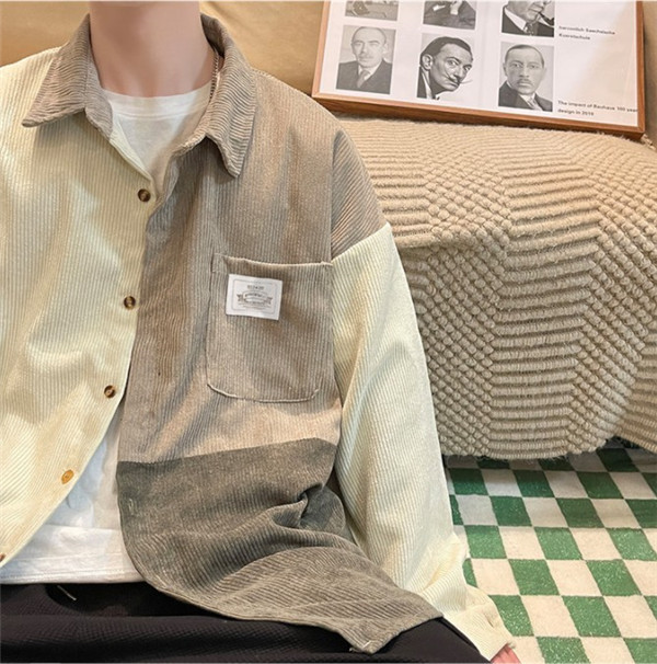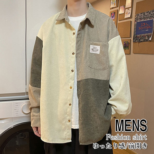 ポイント超超祭 シャツ メンズ トップス 長袖 カジュアル コーデュロイ 切り替え 前開き ミドル丈 大きいサイズ ゆったり 通勤 シンプル 父の日